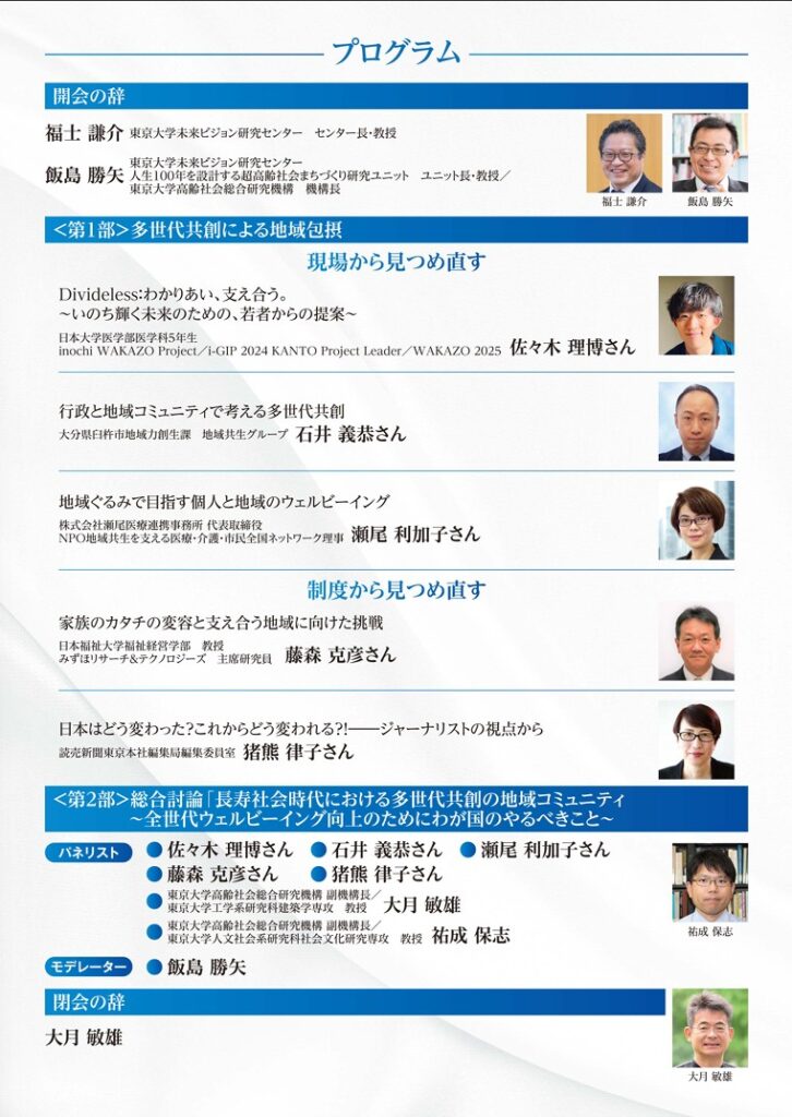 登壇します! 東京大学 高齢社会総合研究機構のシンポジウム